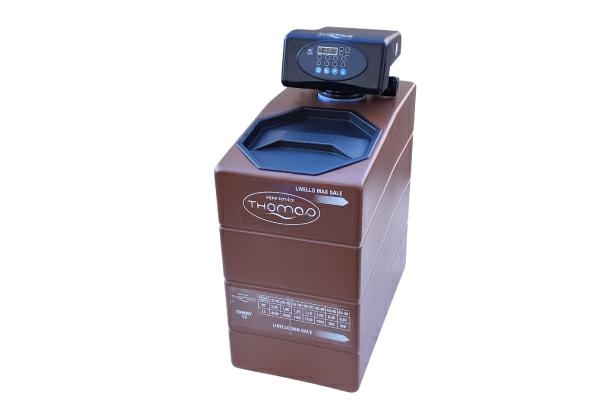 Flow rate: 800L/H Min. pressure: 1.5 ATE Max. pressure: 7 ATE Temperature: 2°C - 35°C IN-OUT connection: 3/8" Drain connection: RUBBER Power supply: 12 V DC Regeneration time: 25 min. Counterflow: 1 min. Brine suction: 15 min. Brine restoration: 6 min. Quick wash: 3 min. Salt consumption for regeneration: 1.2 kg Control valve: RUNXIN F69P3 Programming: Volume Hardness mix adjustment: YES Anti-flooding system: YES Cylinder: GLASS FIBRE REINFORCED POLYETHYLENE Resin content: 9 Litres Salt content: 20 Kg